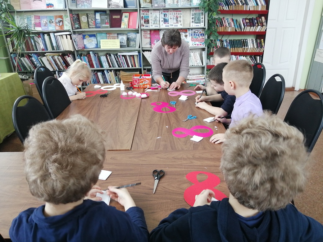 В преддверии самого нежного весеннего праздника – Международного женского дня  Рудовская сельская  библиотека превратилась в творческую мастерскую. Здесь прошел увлекательный мастер-класс  «Сделаем сами и подарим маме» по созданию весенней поделки для мамы. Юные участники под чутким руководством библиотекаря смогли проявить свою фантазию, терпение и ловкость рук. Из обычных бумажных полотенец под детскими пальчиками расцвели нежные цветы.  Из цветного картона выполнили символ весны – яркую и очень изящную цифру 8, украшенную цветами. Эти красивые и душевные поделки стали трогательными подарками для самых важных женщин в их жизни – мам и бабушек.