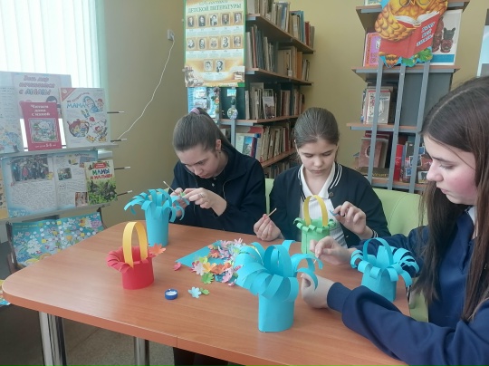 В преддверии самого доброго и нежного весеннего праздника 8 марта в Староюрьевской детской библиотеке прошел мастер-класс «Весенние фантазии» по изготовлению букета цветов для мам, бабушек и сестер.