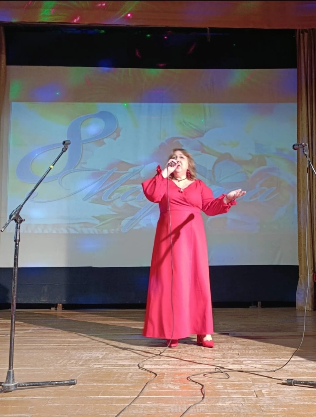 Зрительный зал был наполнен атмосферой весеннего настроения, улыбками, радостью. Ведущая праздничного вечера поздравила всех присутствующих с праздником весны, любви и надежды.