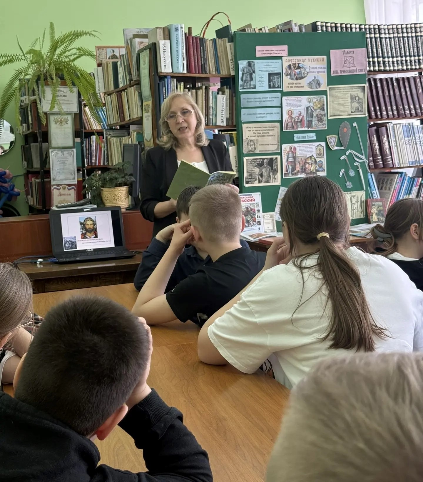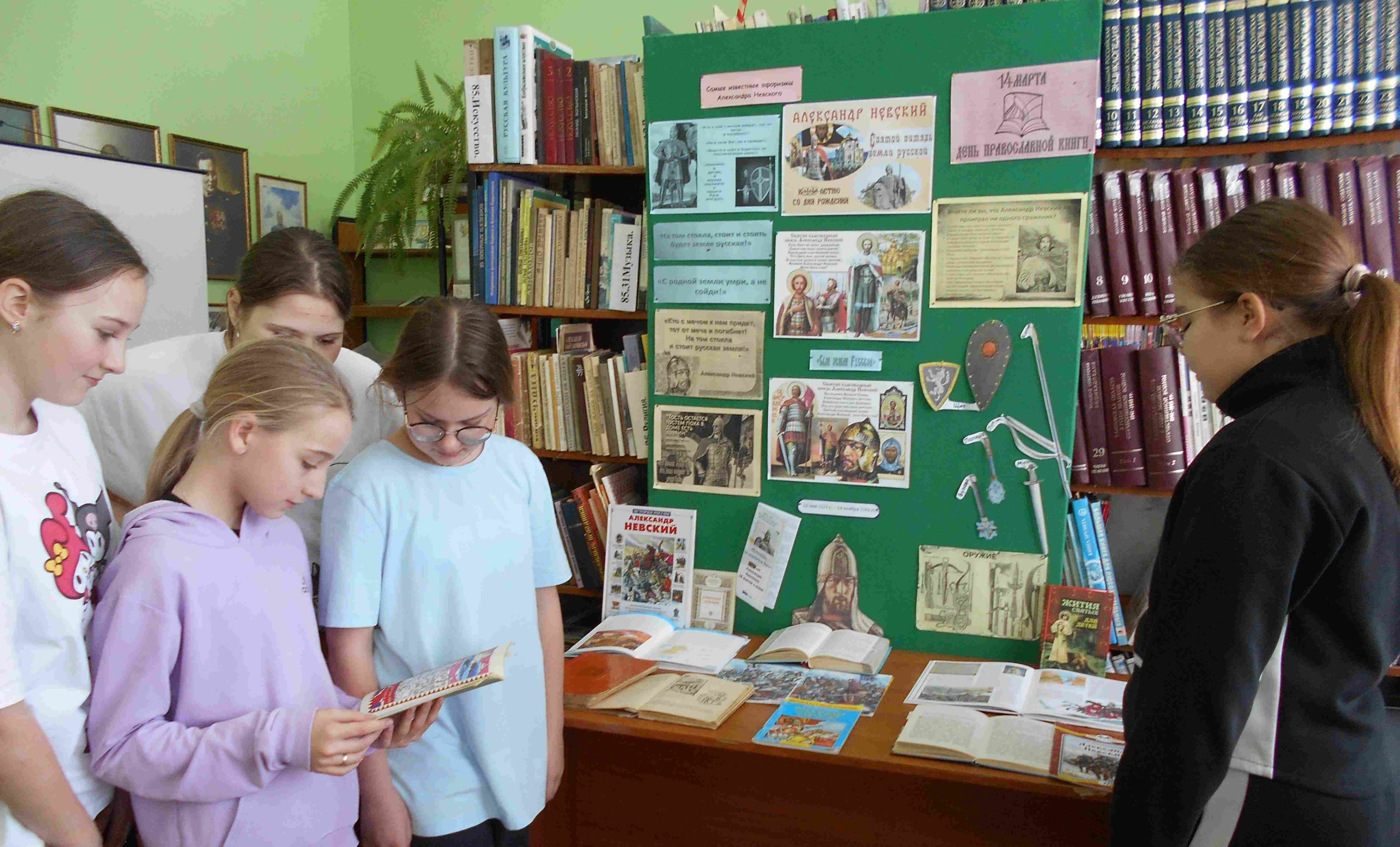14 марта – День православной книги. Дата, напоминающая о значении духовной литературы в истории России, о роли книги в сохранении веры, культуры и традиций. В 2026г. исполняется 805лет со дня рождения великого князя Александра Невского, поэтому детская библиотека приурочила это событие ко Дню православной книги. С учащимися 4-х классов сотрудники библиотеки подготовили и провели час исторического православия «Святой защитник Земли Русской». С помощью слайдовой презентации ребята познакомились с житием А. Невского, узнали о том, что он жил в тяжелое время, когда Руси приходилось бороться с могущественными врагами за свое существование, но благодаря вере, силе духа и дипломатическому таланту полководца смог защитить Русь от завоевателей. Закончил А. Невский свою жизнь в 42 года в монашестве с именем Алексий. Русский народ много веков хранит память имя святого защитника Земли Русской. Он является символом любви к Богу, мужества, отваги и преданности своей родной земле. В ходе мероприятия дети читали стихи, посвященные святому благоверному великому князю. Завершилась встреча просмотром мультфильма об А. Невском. К мероприятию была оформлена книжная выставка «А. Невский: подвиги за веру и Отечество». Ребята подходили и знакомились с представленной литературой из фонда библиотеки и цитатами, изречёнными великим полководцем.