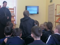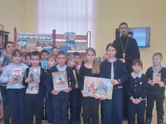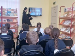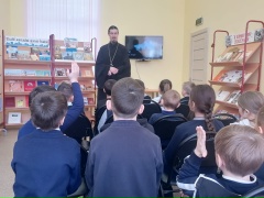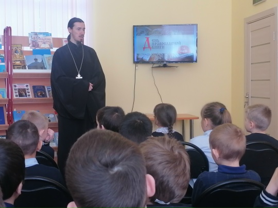 12 марта в Староюрьевской детской библиотеке прошел час духовного просвещения «Книжный мир православия», посвящённый Дню православной книги. В рамках мероприятия учащиеся 2 «б» класса (кл. руководитель Н.А. Фролова) встретились с настоятелем Введенского храма села Заворонежское иереем Димитрием Скрябиным. С большим интересом второклассники слушали рассказ священника об истории книгопечатания на Руси, о пользе молитвы и чтении духовной литературы. Ребята заинтересовались и задавали батюшке важные для них вопросы, на каждый из них получая развернутый ответ. К мероприятию была оформлена книжная выставка , на которой представлена Библия, Евангелие для самых маленьких, Энциклопедия маленького христианина, литература о православных храмах и святых России. Эти православные книги учат нас милосердию, добру, любви, состраданию.