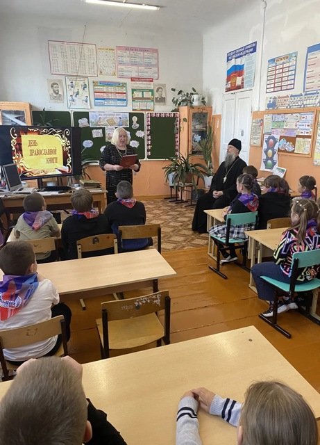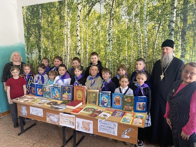 Настоятель местного Храма сделал акцент на том, что первой печатной книгой стала православная книга “Апостол”. Дети увидели старинные богослужебные книги и современные православные книги, собранные на книжной выставке. Презентация о первых шагах в становлении печатного дела на Руси, помогла дополнить и раскрыть образ великого мастера.