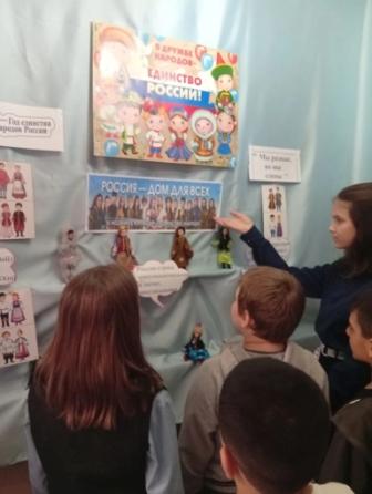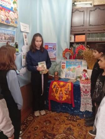 В ходе урока библиотекарь Полянская Т. В. рассказала читателям о целях и задачах Года единства народов, подчеркнула важность уважения к культуре и обычаям всех народов, проживающих в стране. Каждый из них вносит свой бесценный вклад в общую историю нашего государства. А также дети узнали какие народы живут в нашем регионе и как складывались их традиции на протяжении веков, поговорили о народных праздниках, обсудили, зачем их отмечают, и какой глубокий смысл они несут для каждого народа.