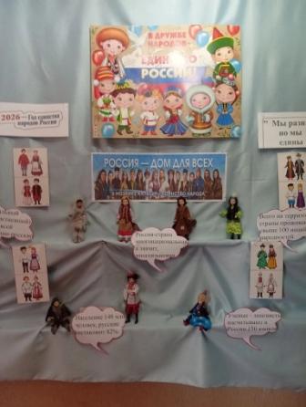 К мероприятию была оформлена выставка-инсталляция, которую украшали трогательные фигурки кукол в национальных костюмах. Литература, представленная на выставке помогла читателям узнать немало нового и интересного о нашей стране и глубже понять общие духовные ценности и историю нашей Родины. Когда мы знаем и ценим традиции друг друга, становится проще строить доброе соседство и вместе смотреть в будущее.