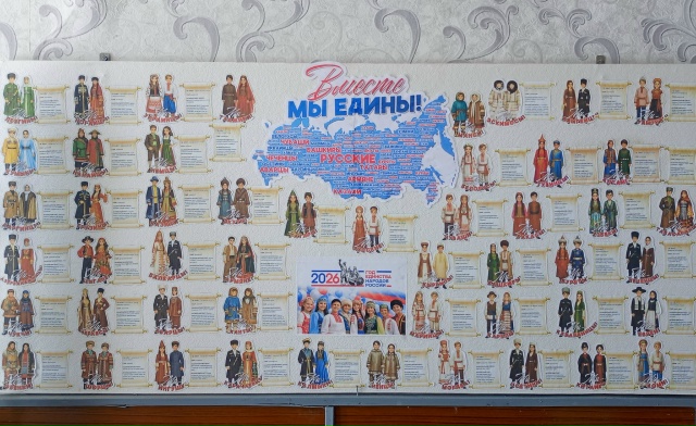 🇷🇺📌По решению президента РФ Владимира Путина 2026 год объявлен Годом единства народов России. Соответствующий указ №962 был подписан 25 декабря 2025 года. 🇷🇺🤝Это особый год, посвящённый укреплению дружбы, мира и согласия между всеми народами нашей большой и многонациональной страны. 🇷🇺📌Цель этого года — укрепить дружбу и взаимопонимание между народами, проживающими на территории нашей многонациональной страны. 🇷🇺📚В рамках Года единства народов России в Зеленогайском филиале оформлен информационный стенд “Вместе мы едины!”. На стенде представлены 50 народов России, где живет каждый народ, их родные языки, национальные блюда и интересные факты. 🇷🇺Давайте вместе сделаем 2026 год годом дружбы и единства! Ведь сила России — в её народах.