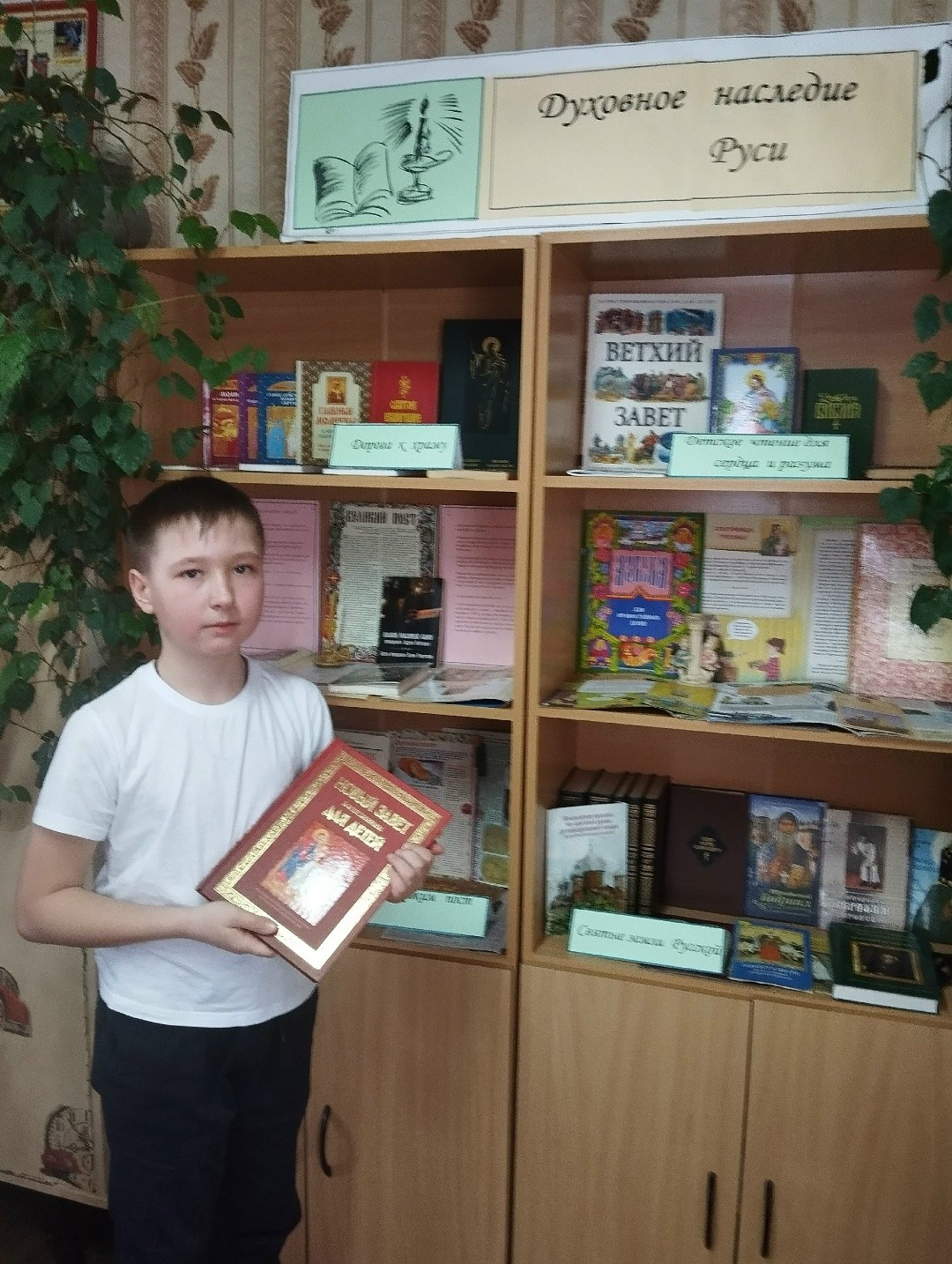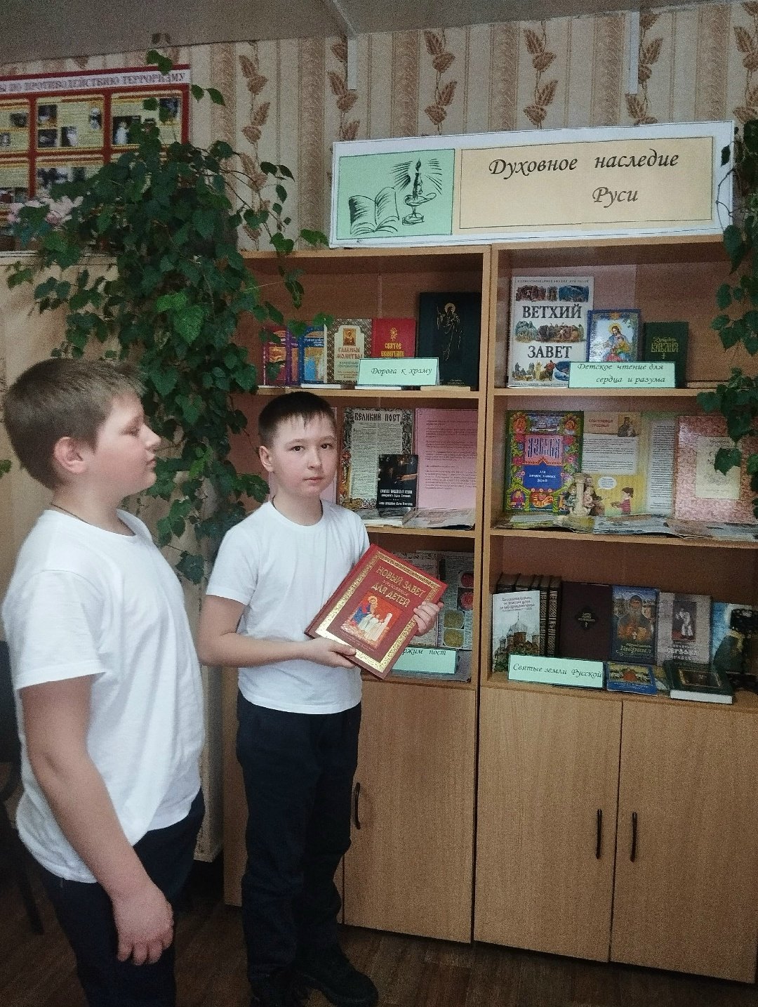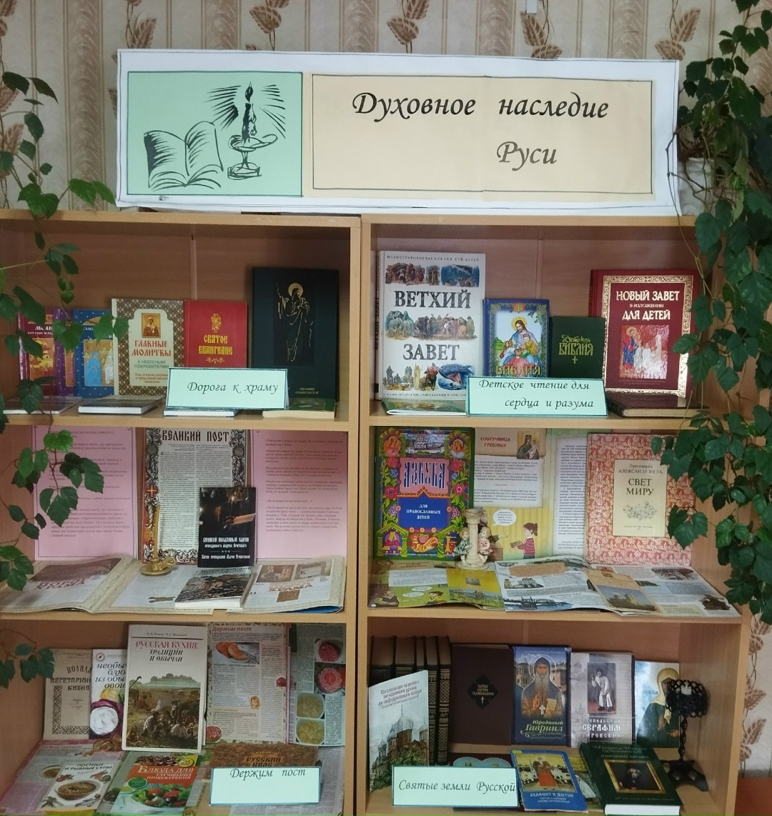В Борщевском сельском филиале для читателей прошла познавательная переменка, приуроченная ко Дню православной книги, проведен обзор литературы предметно – книжной выставки под названием «Духовное наследие Руси». На выставке представлена литература об истории религии, о христианстве, о православных таинствах: богослужении, крещении, венчании. «Русские святые» – книги о жизни и деяниях всенародно почитаемых русских святых: Серафиме Саровском, Николае Чудотворце, Матроне Московской.