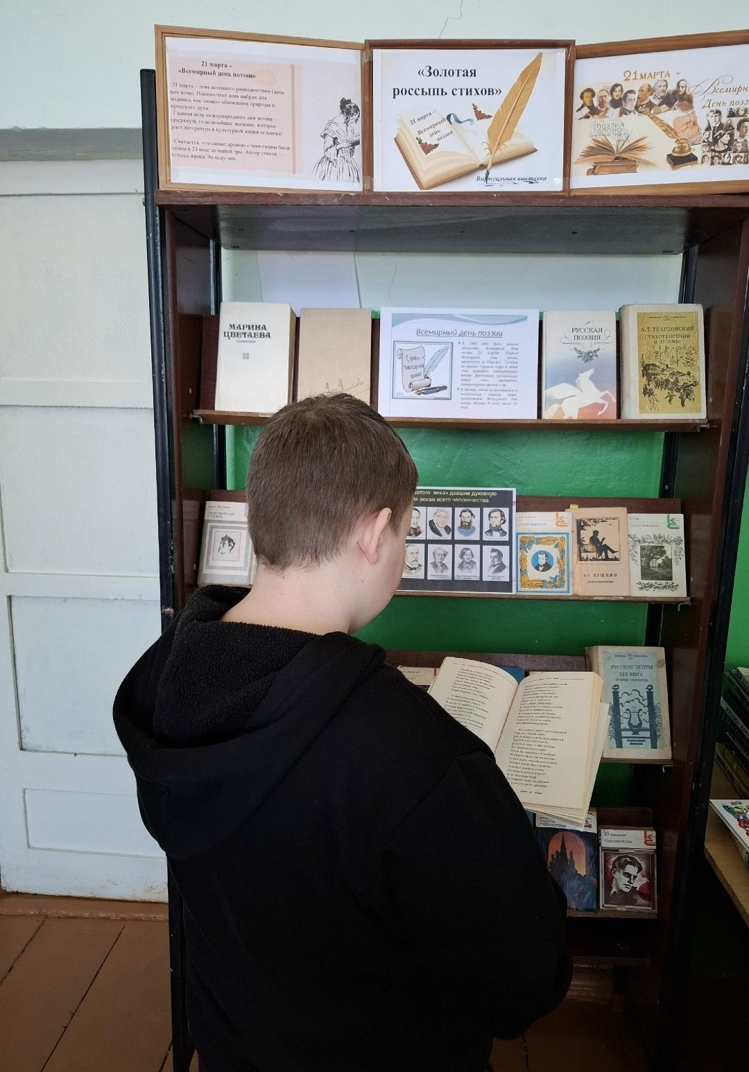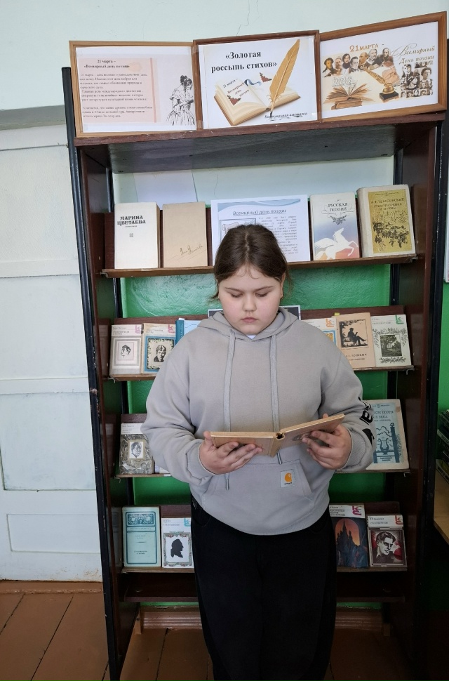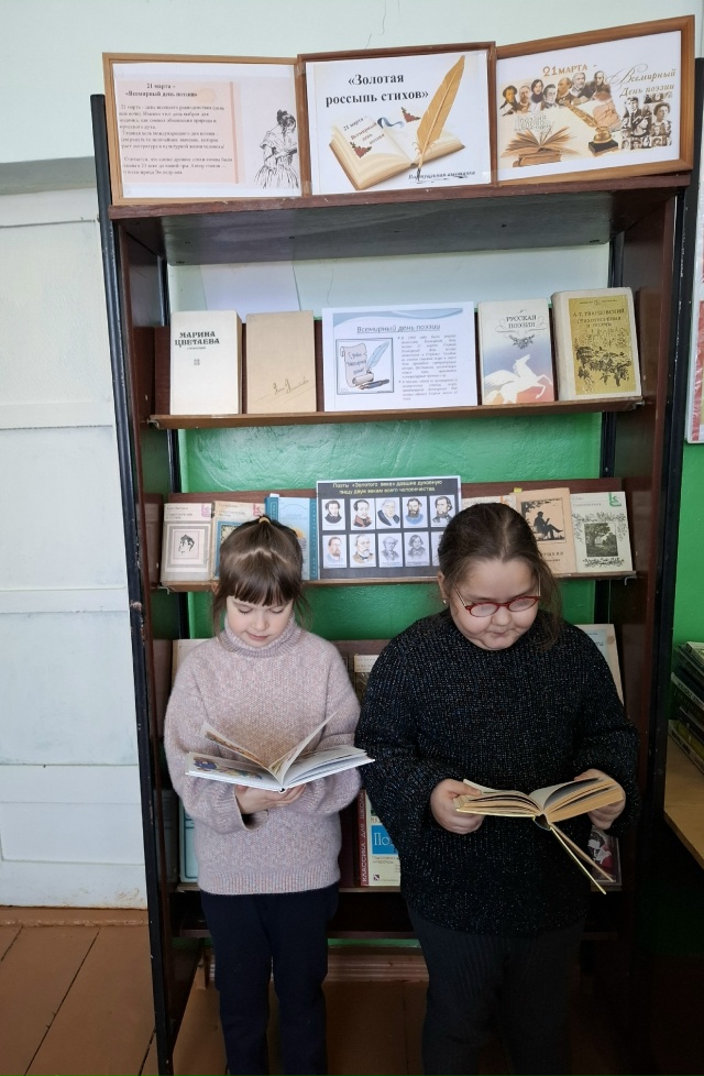 Вниманию читателей в Жидиловском филиале представлена книжная выставка “Золотая россыпь стихов”, с произведениями знаменитых русских поэтов, таких как А. Пушкин, С. Есенин, Н. Рубцов, М. Цветаева, А. Ахматова , А. Фет, М. Лермонтов, С.Есенин, и многие другие. Учащихся читали стихи и отрывки из великих поэтических произведений.