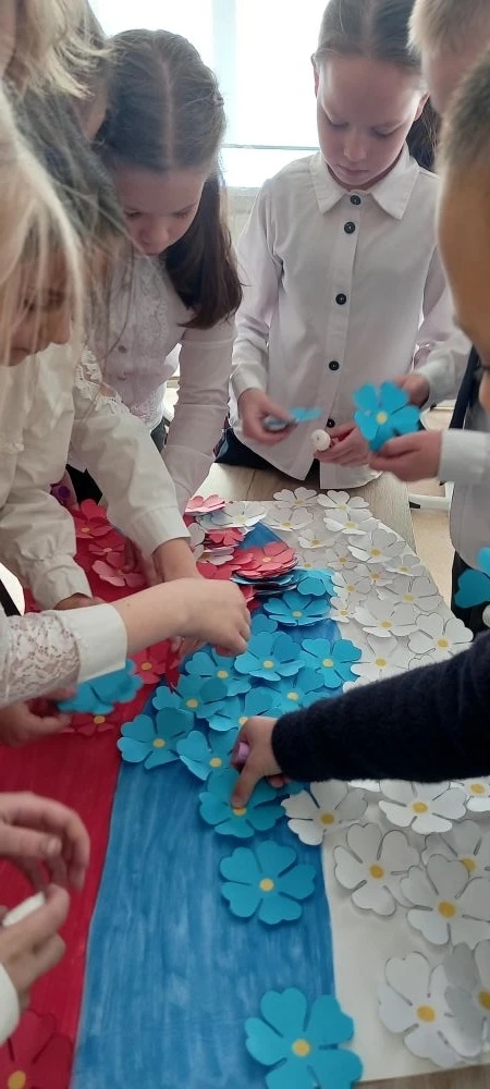 Ведущие рассказали об истории праздника и о событиях, которые предшествовали воссоединению Крыма с Россией. Побывав в «путешествии» по городам полуострова, ребята узнали о достопримечательностях и природных памятниках Крыма, особенностях его географического положения, известных людях, родившихся в Крыму, ответили на вопросы викторины «Знаешь ли ты Крым?». Совместно с учениками 2 «Б» класса проведен мастер-класс по изготовлению флага России в технике объёмной аппликации.