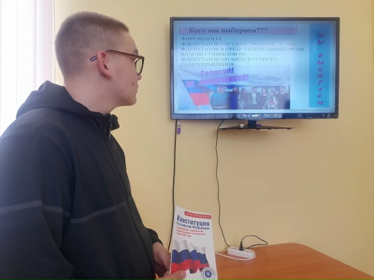об избирательных правах, о порядке голосования, видах выборов. Для закрепления полученных знаний библиотекарь провела викторину «Что ты знаешь о выборах?». Подводя итоги мероприятия, присутствующие пришли к общему мнению, что выбирая своё будущее – будущее своей страны, необходимо иметь активную позицию в жизни. Все участники получили маленькие подарки от Территориальной избирательной комиссии Староюрьевского муниципального округа.