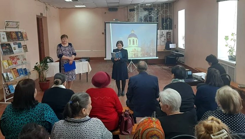 27 марта в Бондарской библиотеке прошёл праздник, посвященный Дню православной книги. Открыла мероприятие заведующая отделом обслуживания Ширшова Татьяна словами: «В Год единства народов России тема православия имеет большое значение. Так как православная книга учит человека добру, милосердию, состраданию, воспитывает в нем любовь к Отечеству и родному очагу, позволяет увидеть мир во всем его многообразии и понять смысл жизни». Затем она познакомила слушателей с православным журналом «Фома». В зале прозвучали стихи Н. Сауриной «Слава богу», А. Чапенко «Дивеево», Е. Чистяковой-Шматко «Притча о Фоме». С интересными сообщениями и обзорами православной литературы выступили: Татьяна Ширшова, с темой «Священномученик Сергей Увицкий»; Нина Бочарова, с темой «Бог и победа»; Елена Воронина, с темой «У дел праведных» о священномученике Илье Меркине. Вера Орлова подготовила видеофильмы «Из истории Тамбовской Епархии» и «Екатерина Бакунина». Стихотворение собственного сочинения «Благовещение» прочитала друг библиотеки Н.П. Киреева. На празднике была представлена книжная выставка «Через православную книгу – к духовности». В завершении встречи, председатель Совета депутатов Бондарского муниципального округа Ю.М. Долотов поблагодарил сотрудников библиотеки за интересное мероприятие.