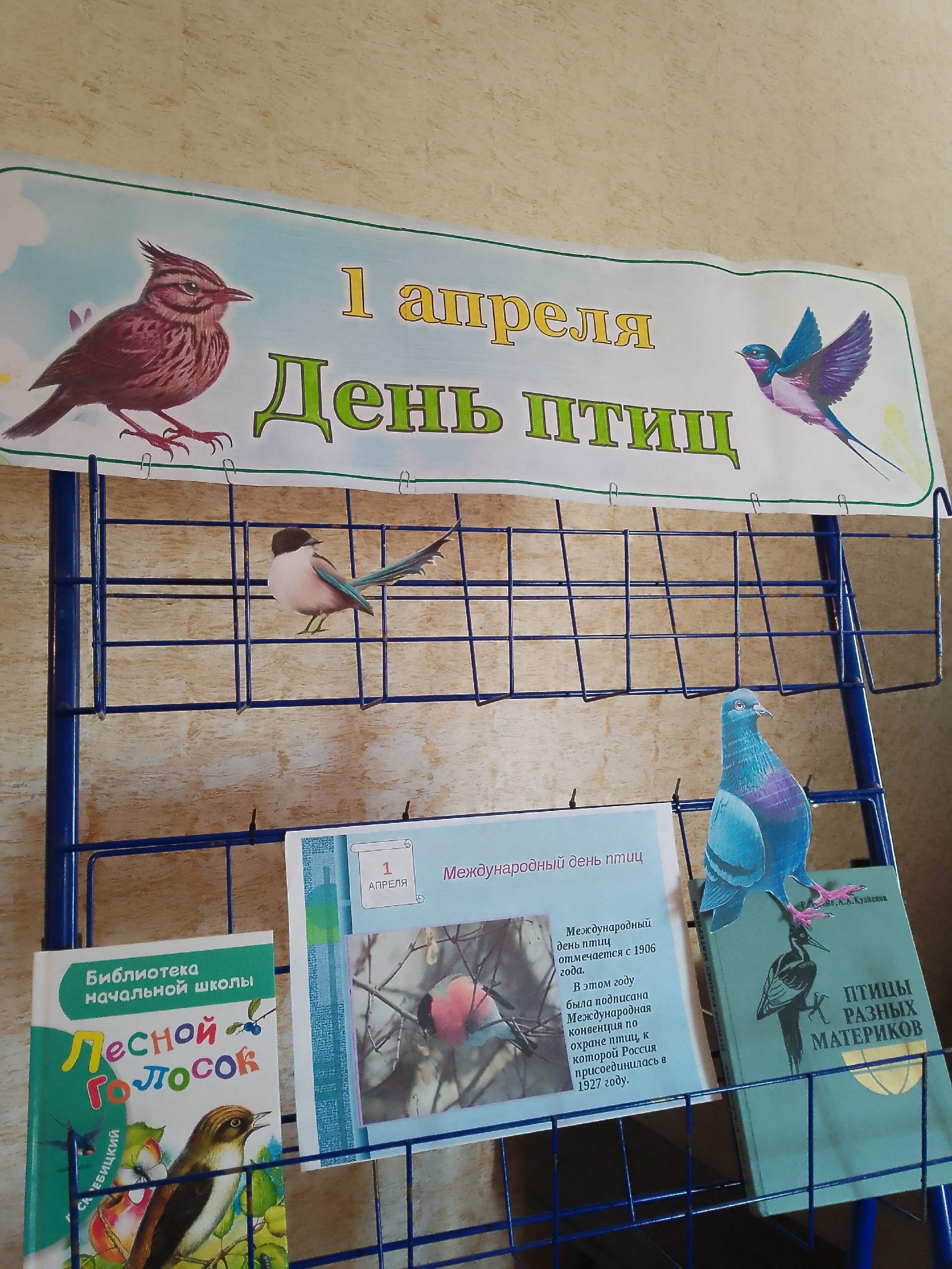 Именно в этот весенний день специально к этому светлому событию в филиале МБУК «Межпоселенческая библиотека Тамбовского муниципального округа Тамбовской области» села Селезни открылась книжная выставка «День птиц», где представлены книги, рассказывающие о жизни птиц, об особенностях их поведения и условиях обитания.