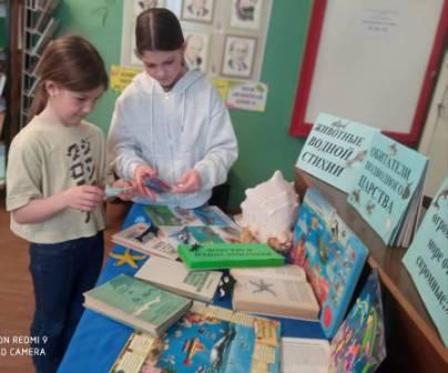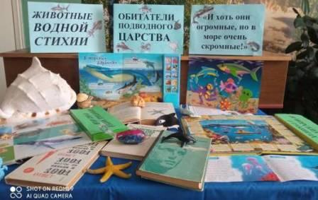 📚Оформлена книжная выставка:’ Животные водной стихии’, на которой представлены книги о водных животных.