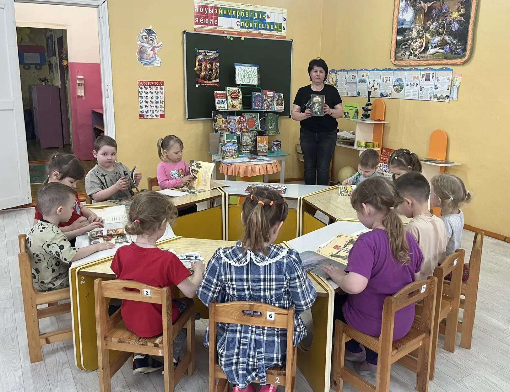 Юные читатели детского сада «Чебурашка» отправились в увлекательное путешествие «По страницам сказок народов России». Библиотекарь Жанна Долотова рассказала о том, как богата Россия культурным наследием, что в каждом уголке нашей Родины живут свои уникальные герои, отражающие дух и характер народа. Ребята с интересом слушали старинные предания, отгадывали загадки и узнали, что сказки бывают разные: о животных, волшебные, социально-бытовые, добрые и злые. Встреча получилась не только весёлой, но и познавательной. Ребята поняли, что, несмотря на разные языки и обычаи, все народы России ценят доброту, дружбу и справедливость.