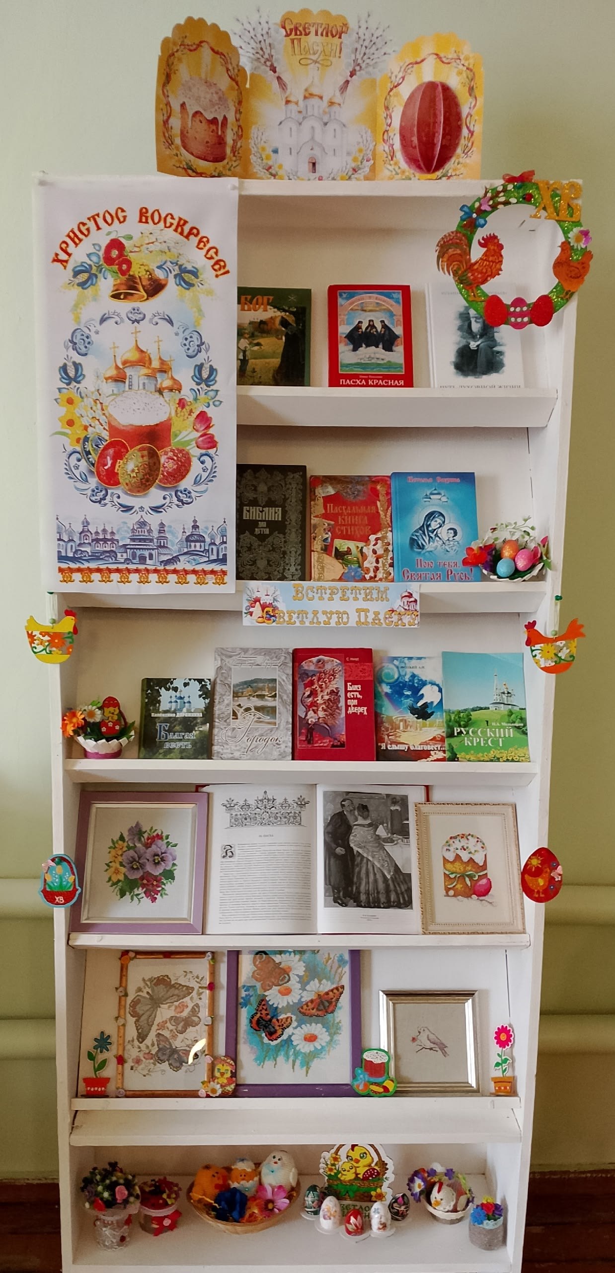 – Мир живого творчества: полюбуйтесь замечательными работами, созданными с любовью участницами клуба «Рукодельный сундучок» специально к этому светлому празднику.