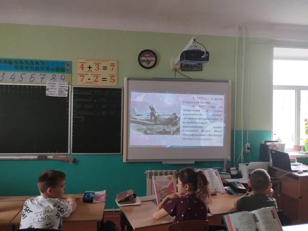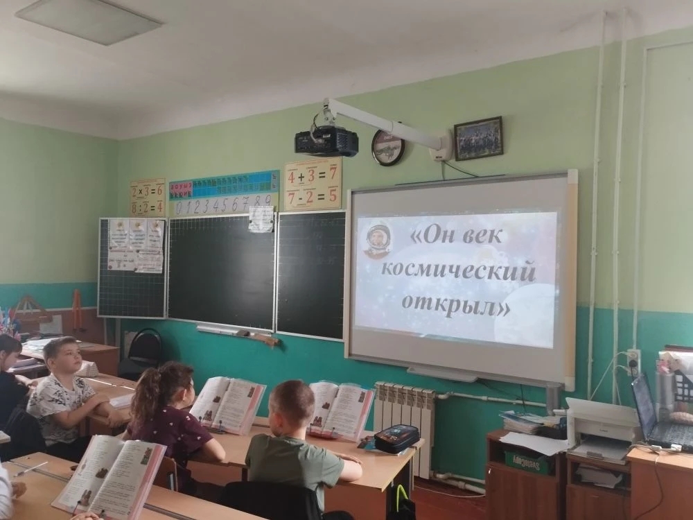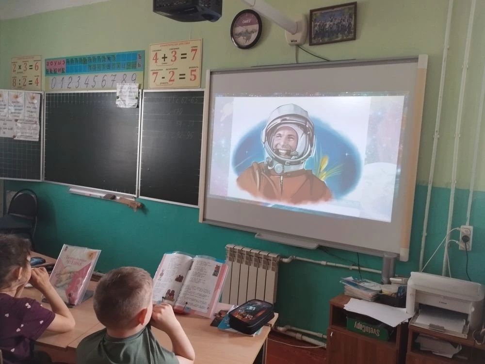 Надежда Арямнова, заведующая библиотеки, рассказала о том, что 12 апреля 1961 года с космодрома Байконур в Казахстане впервые в мире стартовал космический корабль «Восток» с пилотом-космонавтом Юрием Алексеевичем Гагариным на борту.