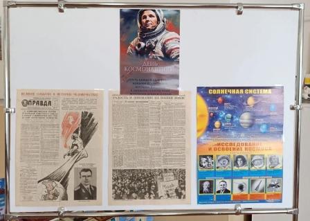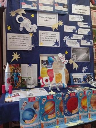 Оформлена выставка “В космосе мы первые”.