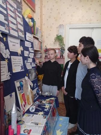 Читатели библиотеки совершили путешествие по просторам Вселенной, познакомились с космическими объектами -галактиками, звёздами, кометами и планетами Солнечной системы. Информацию готовили старшеклассники самостоятельно для своих младших товарищей. Ребята узнали много интересного:какого цвета большие звезды, можно ли в космосе услышать крик, обсудили зачем нужны полёты в космос. Ребята узнали, как учёные готовили к полётам четвероногих, чтобы определить, как живые организмы реагируют на перегрузки, чтобы учесть все недочёты дальнейших полётов.