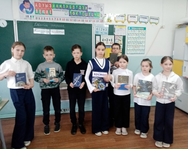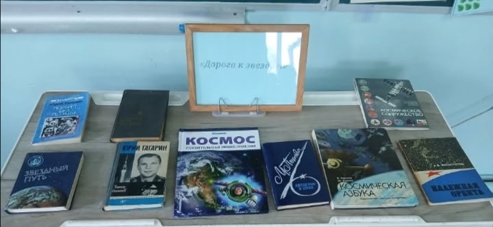 К мероприятию была оформлена книжная выставка: “Дорога к звездам”, которая знакомит с изданиями об истории освоения космоса, именами первых космонавтов, совершивших прорыв в космос.