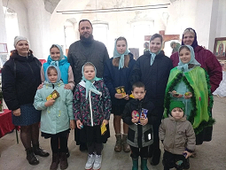 Библиотекарь Покрово-Васильевской сельской библиотеки Екатерина Чулюкина приняла участие в мероприятии, посвященном весеннему православному празднику – Пасхе. Вместе с учителем Воскресной школы Ларисой Колесниковой и детьми поздравили с праздником всех прихожан.