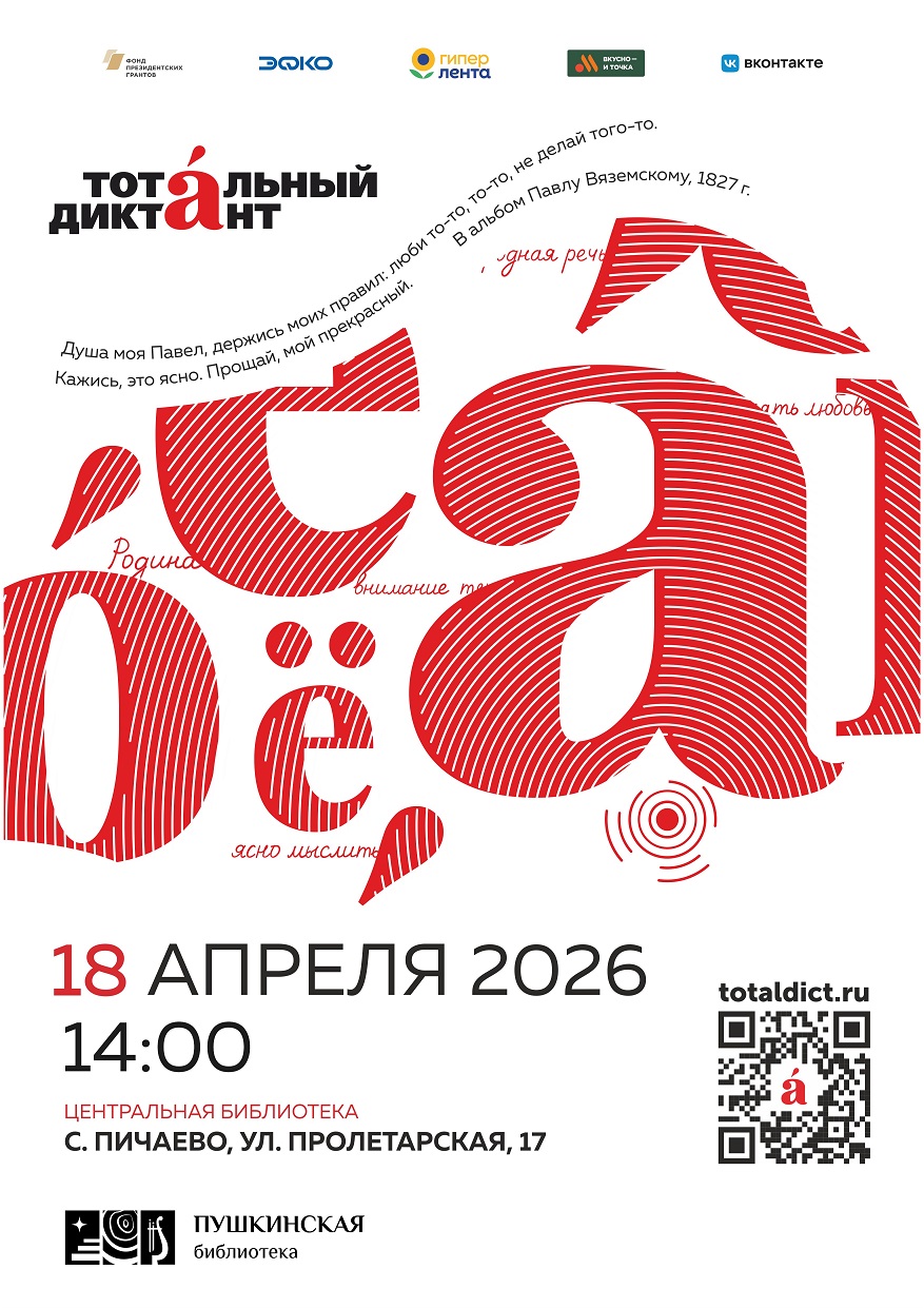 18 апреля 2026 года в 14:00 Центральная библиотека вновь станет площадкой для проведения «Тотального диктанта». Мы приглашаем желающих принять в нем участие. Приходите, чтобы проверить знание родного языка.