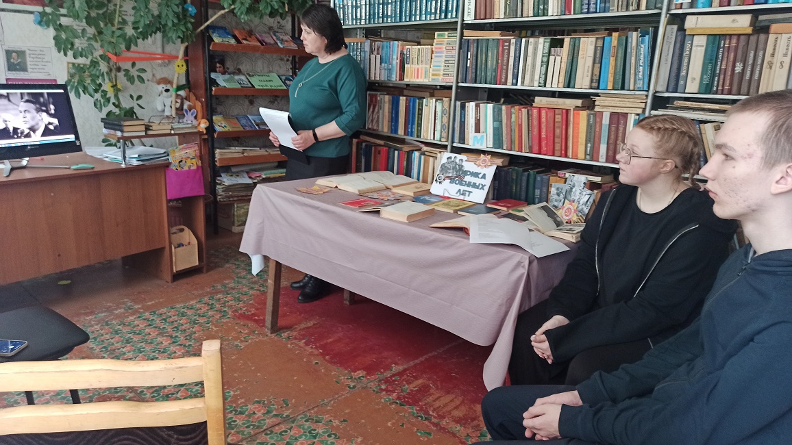 В рамках помощи школьной программе в Байловском сельском филиале прошел час поэзии «Лирика военных лет». Библиотекарь познакомил учащихся со стихами и песнями о Великой отечественной войне, написанными поэтами–фронтовиками. На мероприятии прозвучали стихи, ставшие известными благодаря тому, что были положены на музыку и превратились во всенародно любимые песни. Ребята узнали истории создания песен: «Катюша», «Здесь птицы не поют», «Дороги», «Соловьи», «Враги сожгли родную хату», «Простите пехоте». К мероприятию была оформлена книжная выставка.