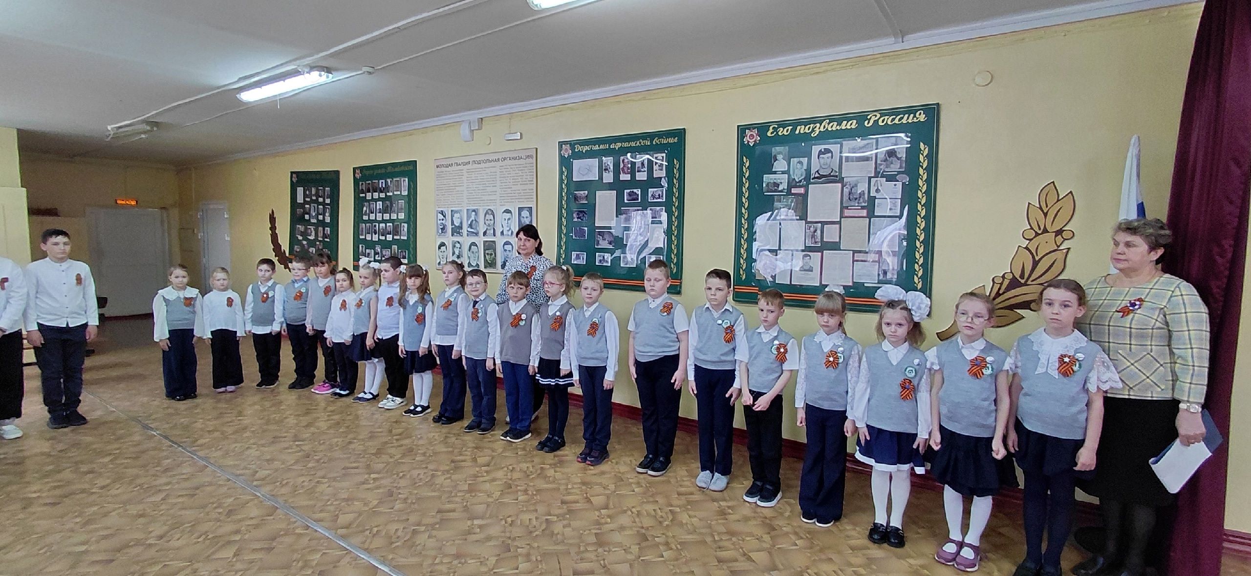 Первоклассникам прикрепили георгиевские ленты и пожелали помнить тех, кто одержал победу в самой кровопролитной войне.