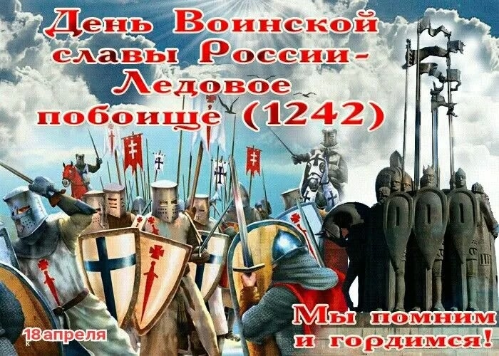📜18 апреля ежегодно в России отмечается День воинской славы в честь победы русских воинов князя Александра Невского над немецкими рыцарями на Чудском озере (Ледовое побоище).