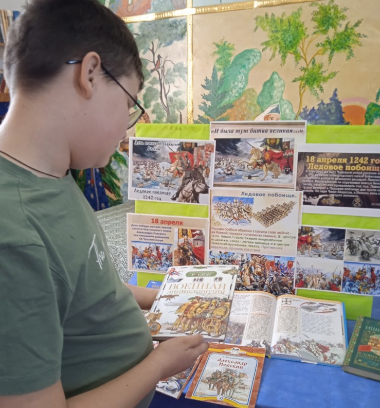 На выставке представлены книги, которые помогут проследить хронику этого сражения. 📖Александр Невский, так умело построил свою тактику ведения боя, что выстроенные традиционной ” свиньёй ” вражеские рыцари были разбиты и обращены в бегство. 📜 Победа русских воинов имела историческое значение: она остановила движение немецких захватчиков на Русь и на многие годы обезопасила её западные границы.
