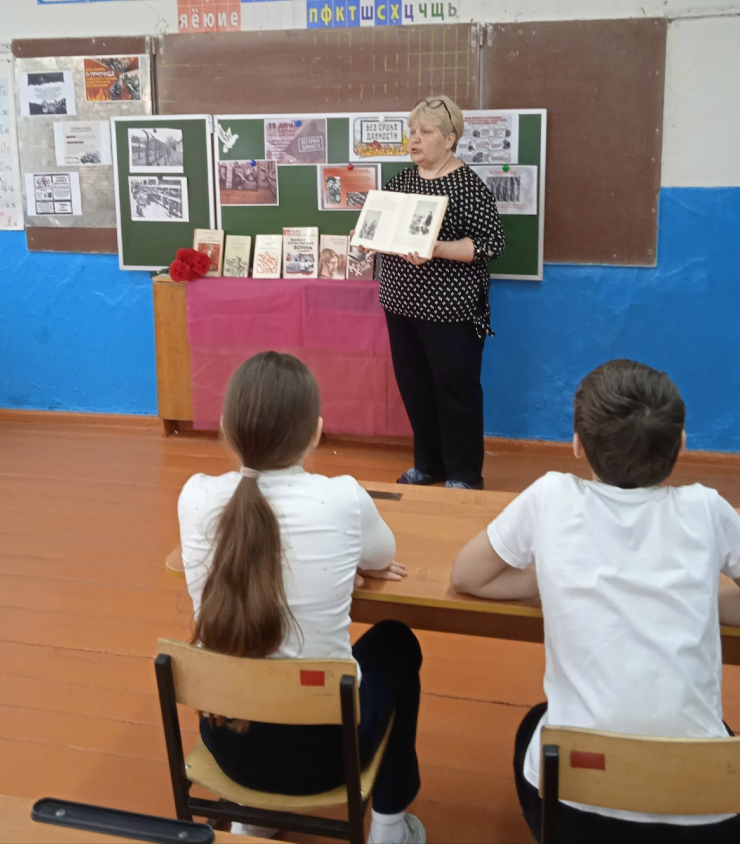 🕯В преддверии Дня памяти жертв геноцида советского народа, совершенного нацистами и их пособниками в годы Великой Отечественной войны, который отмечается 19 апреля, для обучающихся Садостроевского филиала Кочетовской СОШ, библиотекарь Григорьева Н. В совместно с учителями школы провели Всероссийское памятное мероприятие “Никто не забыт! Ничто не забыто!”.