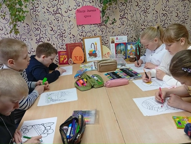 Далее мы вслух прочитали несколько художественных рассказов из сборника: « Детям о Пасхе Христовой», и в завершении нашей праздничной встрече ребята с большим удовольствием раскрасили рисунки на пасхальную тему. Творческие пасхальные работы создали ребятам яркое и праздничное настроение. 🌺🌹