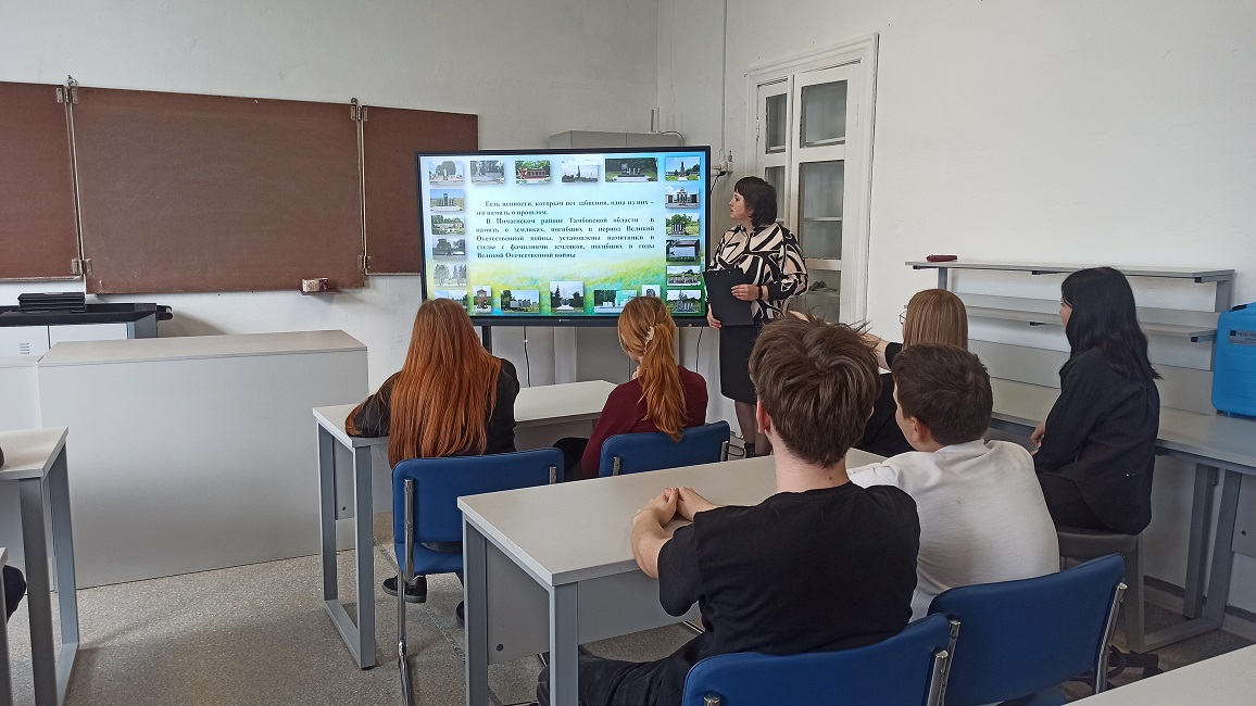 18 апреля отмечается Международный день памятников и исторических мест (День всемирного наследия) – дата, призванная привлечь внимание на необходимость сохранения уникальной культуры народов мира. К этому дню в Байловском сельском филиале прошел час краеведения «Сокровища времени: памятники и исторические места Тамбовской области». Заведующий Байловским сельским филиалом Светлана Лобанова рассказала учащимся Байловской школы о том, что считается культурным и природным наследием, какие объекты относятся к историческим местам. В подготовленной презентации библиотекарь более подробно рассказала о памятниках и усадьбах Тамбовской области, а также о памятниках воинам Великой Отечественной войны, которые находятся в Пичаевском округе.