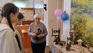Особый интерес у зрителей вызвала выставка-экспозиция «Предметы русского быта 19-20 века». Краевед А.П. Щербакова рассказала присутствующим о том, какие вещи были в обиходе у наших предков и как они применялись в повседневной жизни.