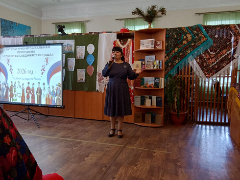 Ведущая библиотекарь М. Павлова поздравила присутствующих с важным событием в библиотечной среде. Она отметила, что участие в «Библионочи-2026» — это не просто встреча, а настоящий праздник, способствующий укреплению дружбы людей разных национальностей и взаимопонимания между поколениями.