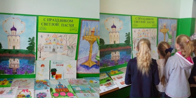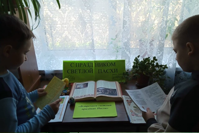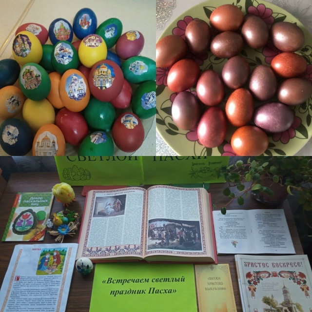 К мероприятию была оформлена книжная выставка “Встречаем светлый праздник Пасха”.