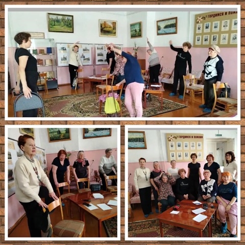 На мероприятие была приглашена инструктор по лечебной физкультуре В. Чигрина. Она рассказала и показала комплекс упражнений для укрепления сердечно-сосудистой системы, опорно-двигательного аппарата и профилактики осложнений заболеваний.