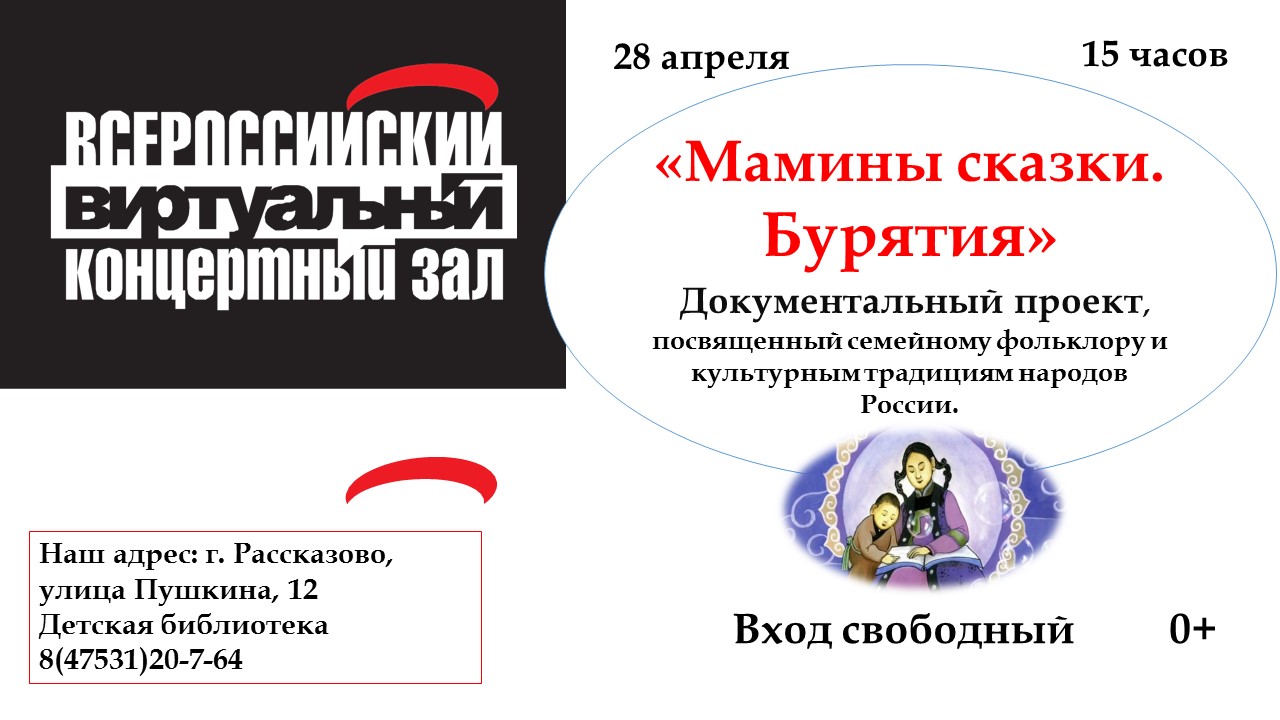 Приглашаем вас в удивительный мир народного творчества! В нашем Виртуальном концертном зале стартует трансляция фильмов документального проекта Дзена «Мамины сказки». «Мамины сказки. Бурятия» открывает серию видео, где мы отправимся в путешествие по регионам России в поисках народных историй. Эти истории из поколения в поколение передают мамы своим детям. В каждом видео — фольклор, традиции и голоса тех, кто хранит культурное наследие нашей страны. Героини проекта — женщины, которые развивают культуру своего региона.