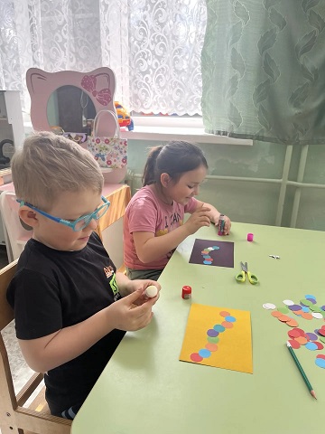 В разновозрастной группе Вернадовского филиала прошло внеклассное занятие на тему аппликация, которое является одним из самых любимых видов творчества у детей. Ее техника очень проста. Из кружочков цветной бумаги и наклеивания их на контур рисунка. Воспитанники разновозрастной группы с удовольствием осваивают этот вид аппликации, развивая мелкую моторику. Под руководством библиотекаря они украсили рисунок «Улитка».