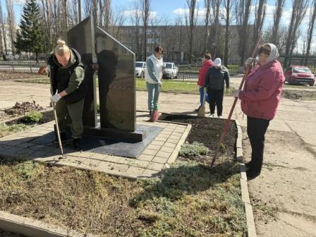 В рамках Всероссийской недели субботников «Мы за чистоту», накануне памятной даты- Дня памяти погибших в радиационных авариях и катастрофах, коллектив Центральной детской библиотеки Первомайского округа вышел на уборку территории вокруг памятника на улице Э.Тельмана поселка.