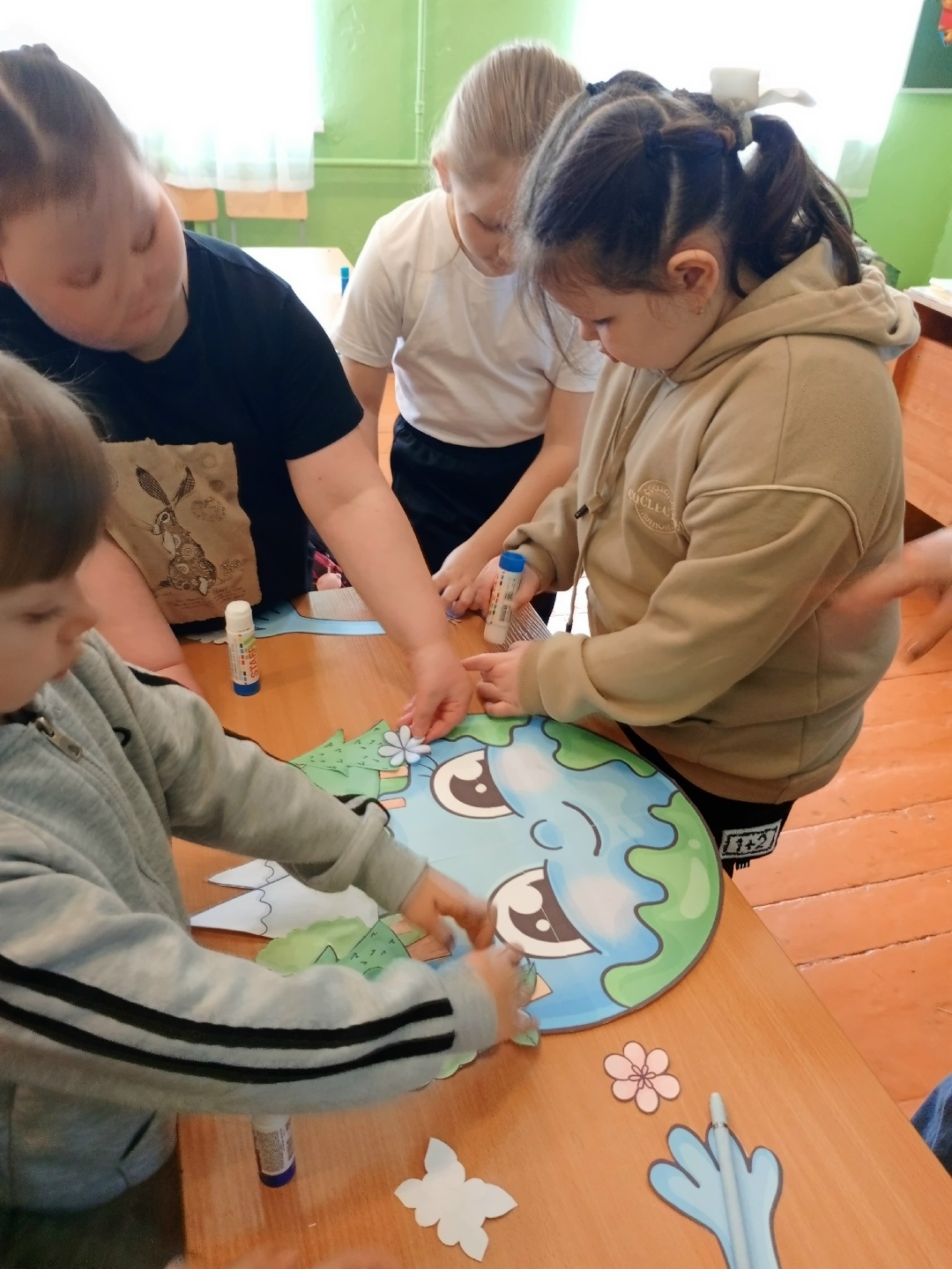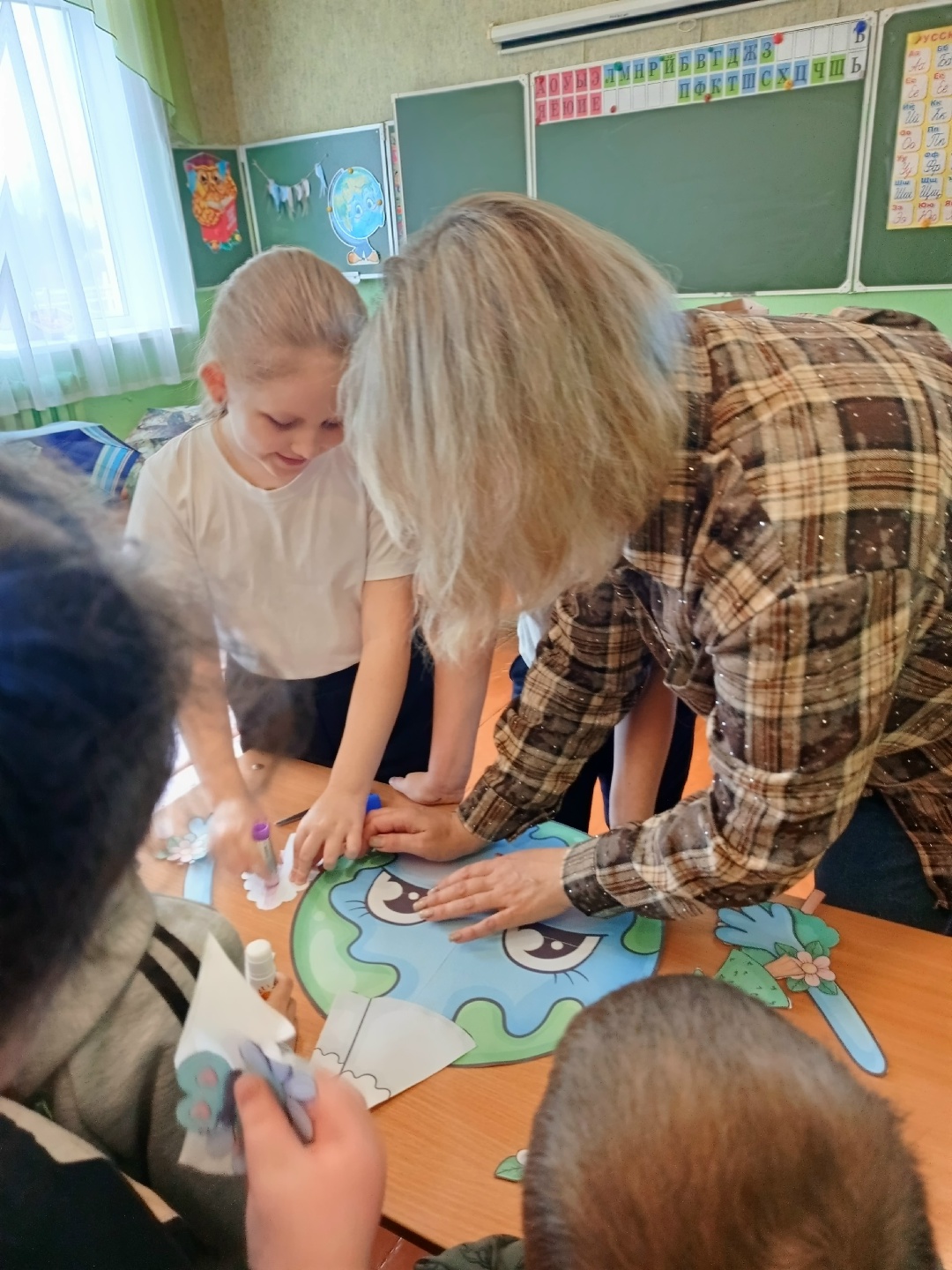 С учащимися 1 класса Зеленогайского филиала МБОУ Заворонежской СОШ проведен экологический час “Земля у нас одна”. Ребята познакомились с историей Международного дня Земли, с экологическими проблемами, существующими во всем мире, о том, чем можно нам помочь в их устранении, а так же много другой полезной, познавательной информации. В завершении часа ребята сделали коллективную поделку “Наша Земля”.