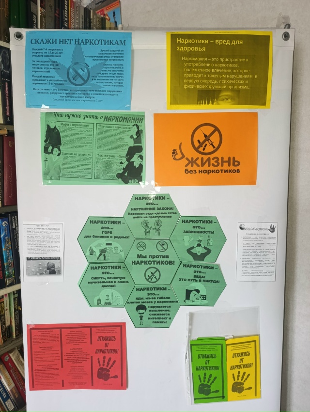 На стенде можно ознакомиться о вреде наркотиков, последствиях и как уберечь себя, своих близких от этой “белой чумы„.