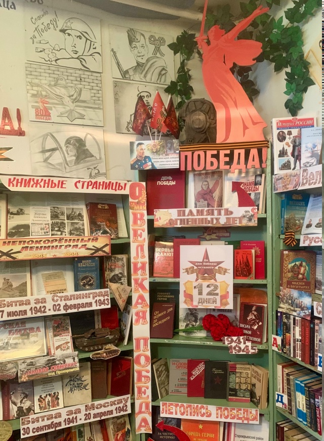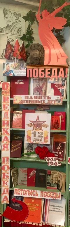 В Скобелевской сельской библиотеке-филиале действует Календарь обратного отсчёта до Дня Великой Победы. Календарь отсчета дней до 9 Мая 2026 года с описанием ключевых событий Великой Отечественной войны. Один календарь оформлен на выставке внутри библиотеки, а второй на улице.