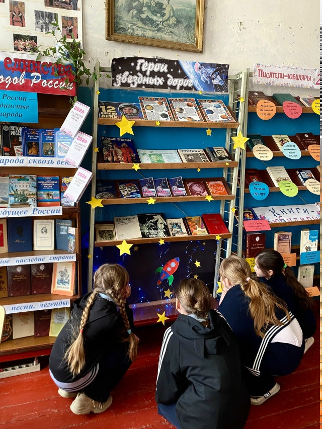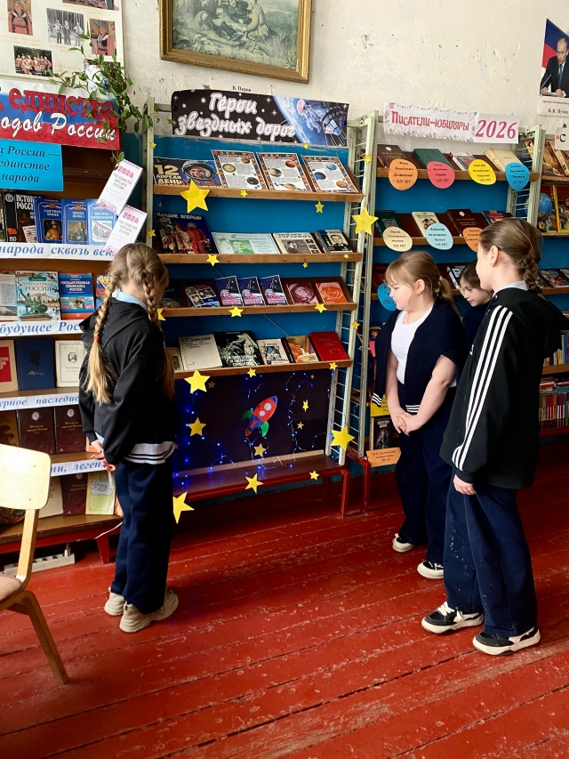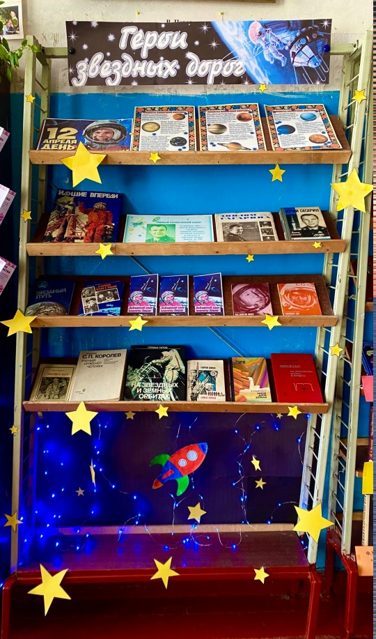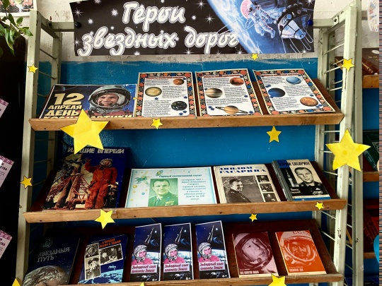 К мероприятию оформлена выставка «Герои звездных дорог». На выставке представлены материалы об истории освоения космического пространства, прошлое и будущее исследований в космосе, достижения и перспективы развития космонавтики. Особое внимание уделено легендарному «космонавту номер один» и его эпохальному полёту, организованному выдающимися советскими учёными и конструкторами.