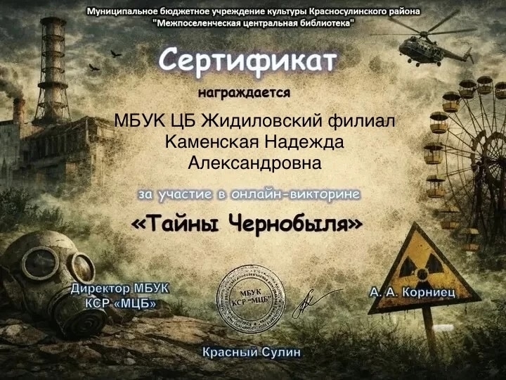 В Жидиловском филиале прошёл час памяти «Чернобыль — наша память и боль», посвящённый этой скорбной дате. Библиотекарь рассказала ребятам о масштабах катастрофы, о работе по ликвидации радиационных заражений на месте аварии, о подвиге ликвидаторов.
