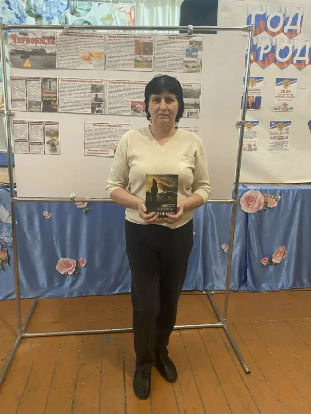 Далее была представлена информация о Чернобыле как о городе, ставшем символом крупнейшей техногенной катастрофы. 26 апреля Генеральная Ассамблея ООН объявила эту дату Международным днём памяти жертв радиационных аварий и катастроф. Библиотекарь представила книгу «Место подвига – Чернобыль», рассказывающую о наших земляках, участниках – ликвидаторах последствий аварии.